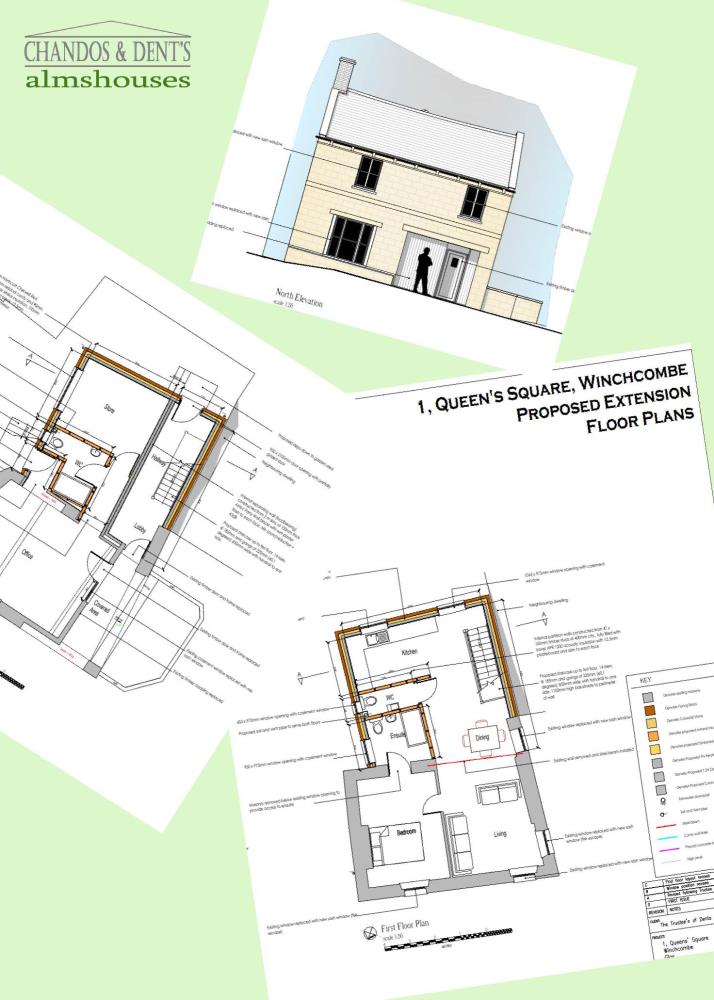 Chandos & Dent’s Almshouses have recently purchased 1 Queens Square – a prominent but sadly neglected property in the centre of Winchcombe. Our vision is to develop this two storey building into a permanent office for the Trust activities and a one bedroomed maisonette.